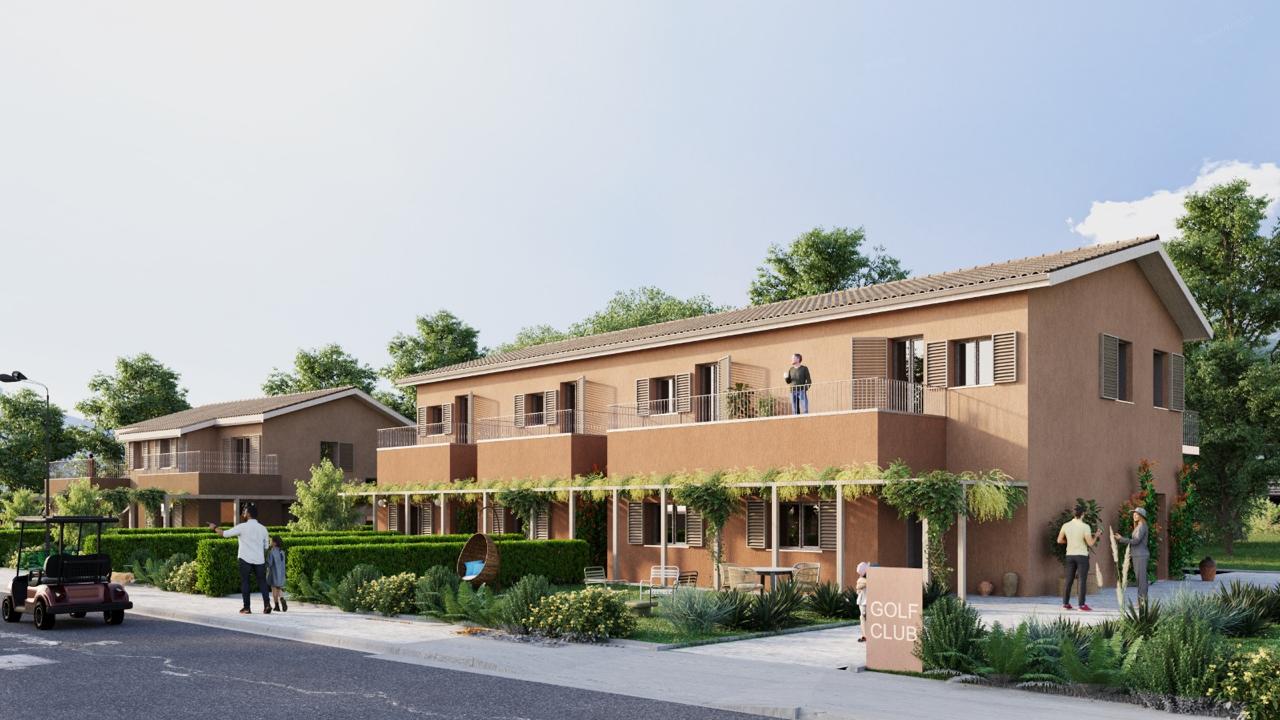 Seven terracotta row houses on a quiet cul-de-sac backing onto a golf course.